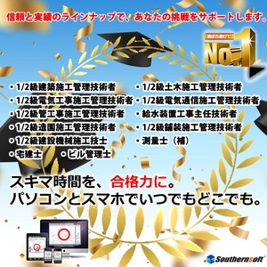 「測量士」試験合格を目指す方の為の画期的な学習システム!PC専用ソフト(パソコン)とスタディトライ(スマホ学習サービス)のダブル学習によりとても効率よく試験対策をすることができます。