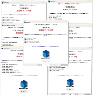 「解体工事施工技士」試験合格を目指す方の為の画期的な学習システム!PC専用ソフト(パソコン)とスタディトライ(スマホ学習サービス)のダブル学習によりとても効率よく試験対策をすることができます。